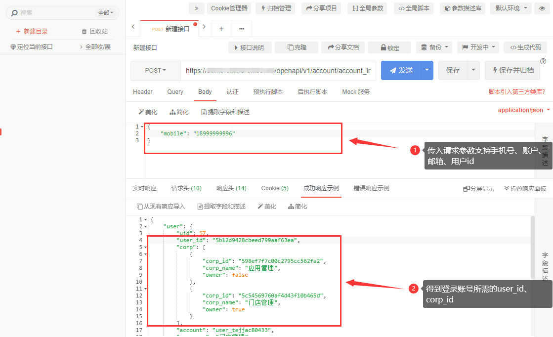 1、调用查询账号基本信息接口(接口文档)查询需登录账号的user_id(用户id)和该账号所在的corp_id(团队id)