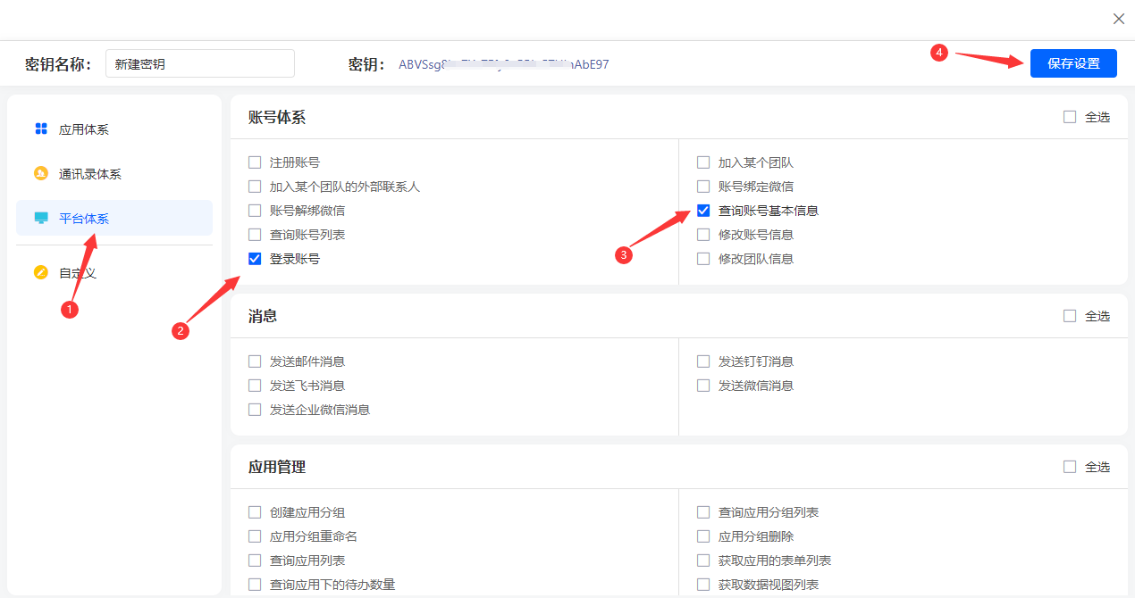 3、给API Key设置查询账号基本信息和登录账号权限